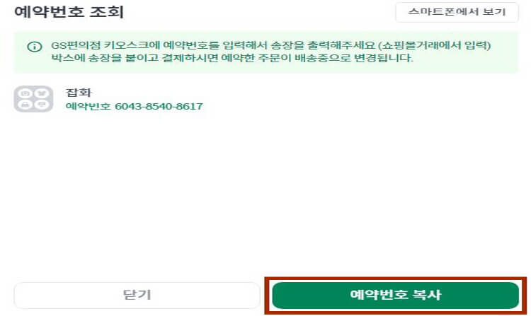 예약번호 메모 / 파스토셀프앱 확인 가능 - 예약한 편의점 방문 (GS/CU) - 택배기계에 쇼핑몰거래 클릭 - 예약번호 입력 - 송장 출력 후 부착한 후 택배비 결제